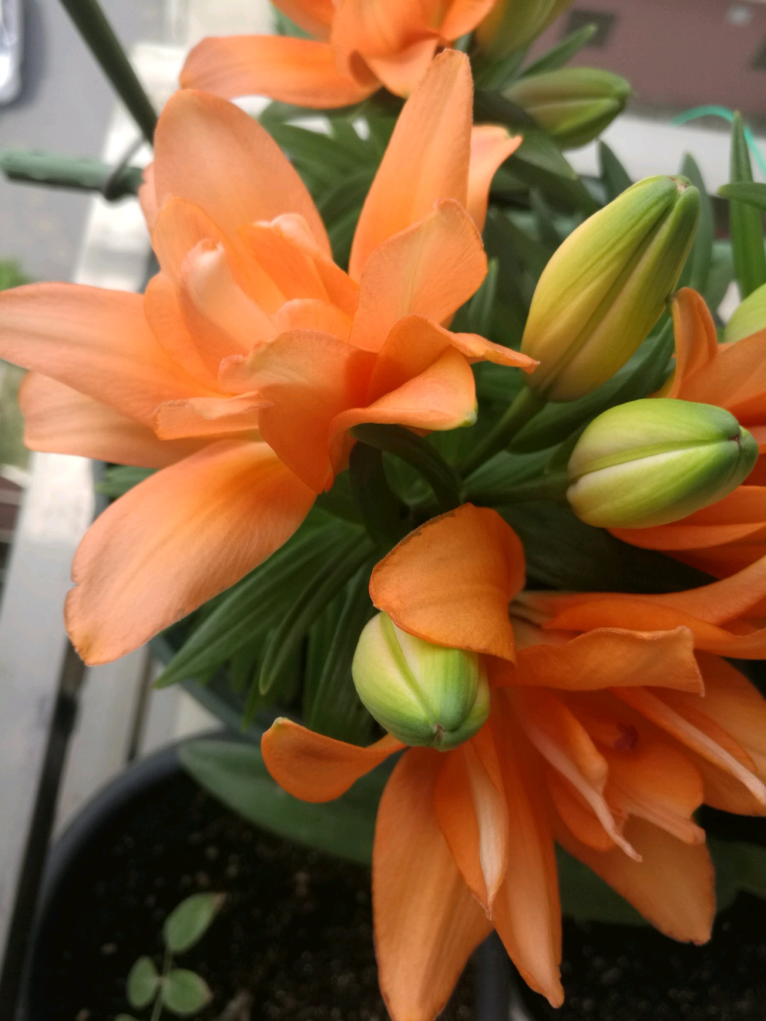 ,人生第一朵百合花开啦!另外两颗还是傻大个状态,希望也快点看到开花的一天?。