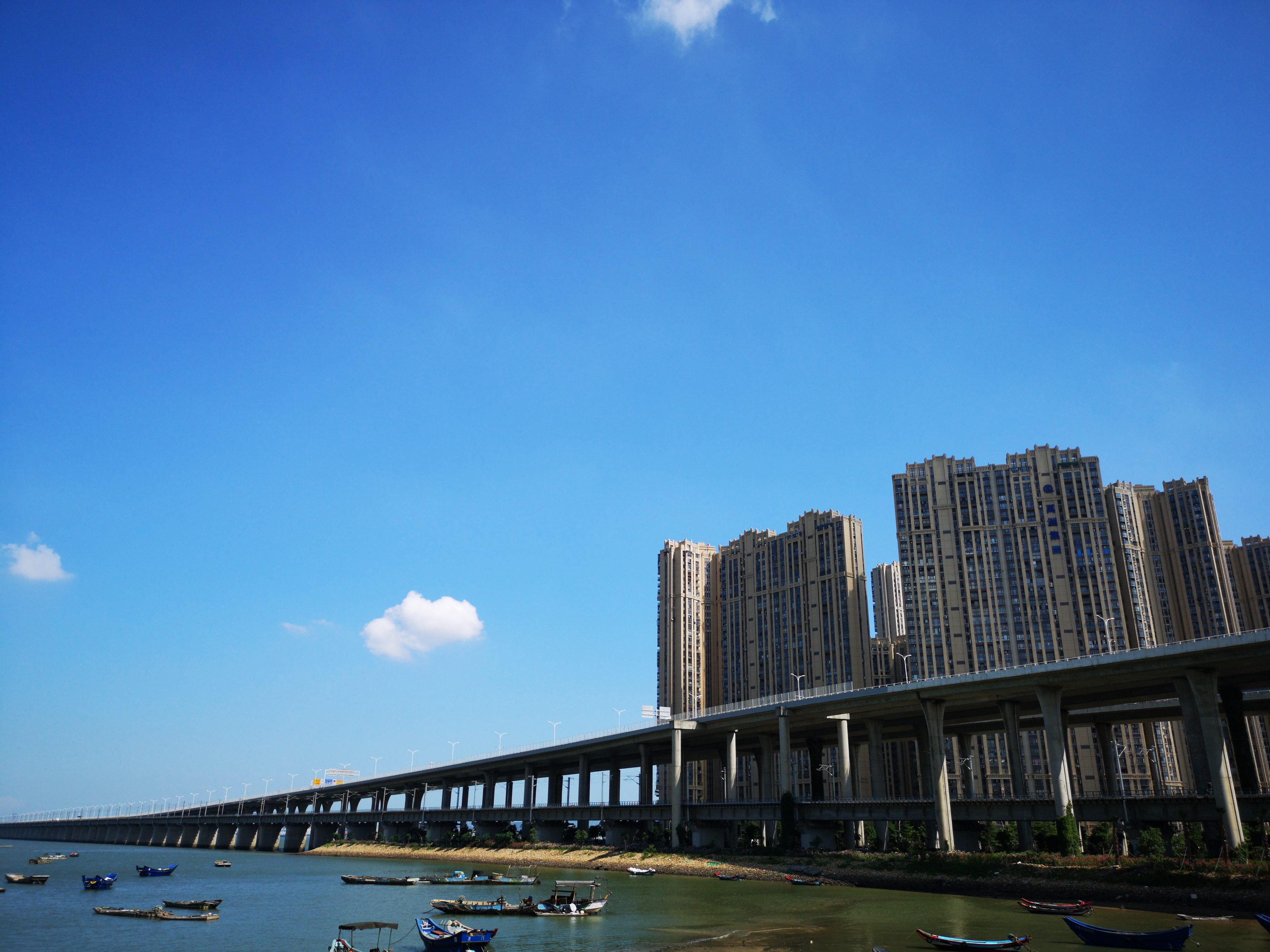 碧水蓝天白云,天气不错,随手一拍,哇,这个色彩是不是有毒?