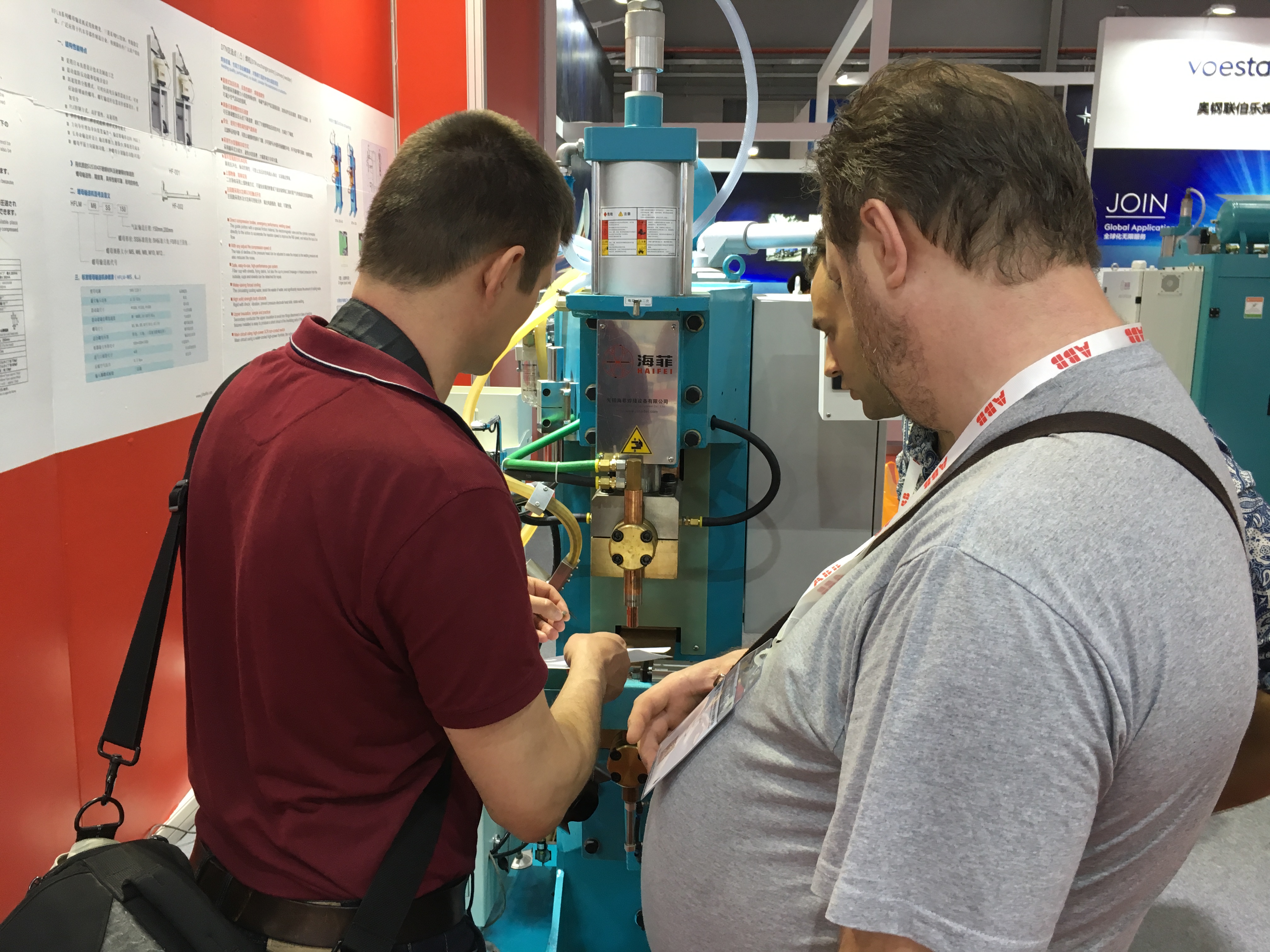 观众参观HFDB-100中频逆变直流焊机及螺母输送机