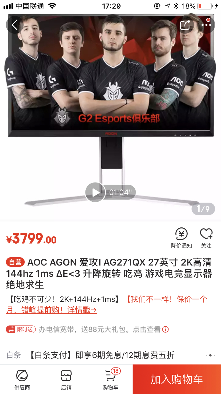 我现在是用的这款,当时买的时候想的只要是2K144就可以,但是败家那款越看越好看,就有点忍不住了,其实现在也可以买,主要是想等618看能降多少。