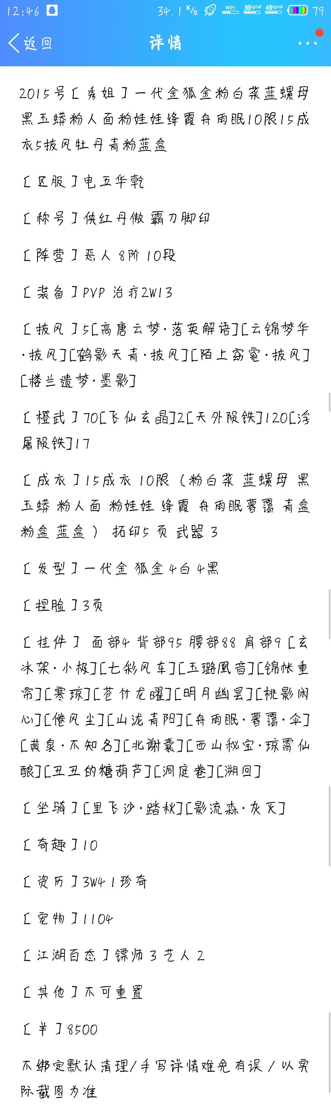 楼主换花姐吗?紫白菜狐狸毛八披风四十八成衣十四限量三十脸型两挂宠两配囊七面饰三十发型六金发二红发十白发一百六十背挂熊猫面馆,素心忘弦,韶华春秋,水云寂等超多互动,一百二十六腰挂珠盏等超多互动,二十八肩饰五万八资历。电信月卡的