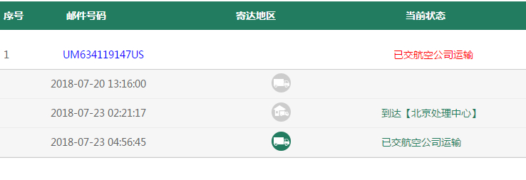 8月底到的,UA开头,现在情况就这样,中间还被寄回去过一次