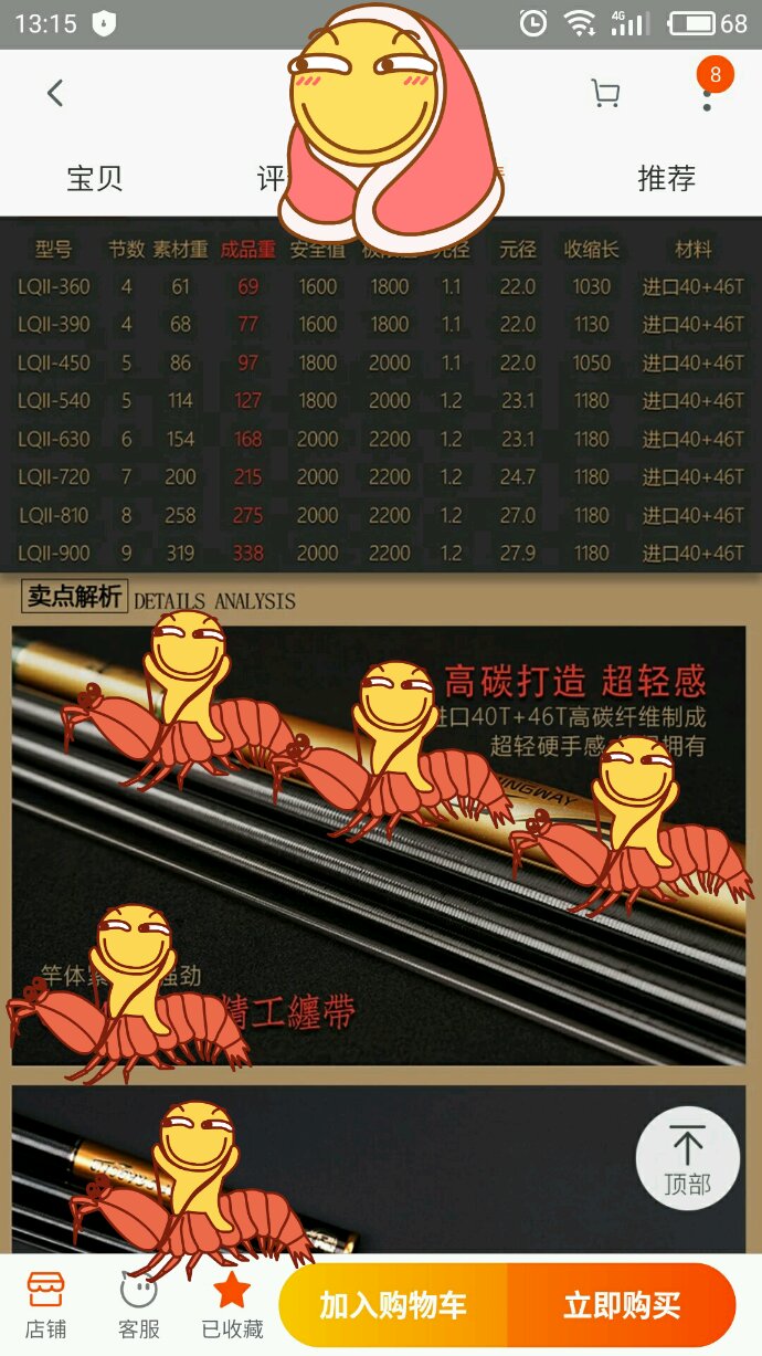 我也是这个意思,但对比了下宝飞龙原厂那么多款也都这个数据,上了200克都是可以干巨物的了。而我贴图的这个有款200克标最大钓重3500!和宝飞龙原厂那些数据上一个等级了,但价格只有1/3!