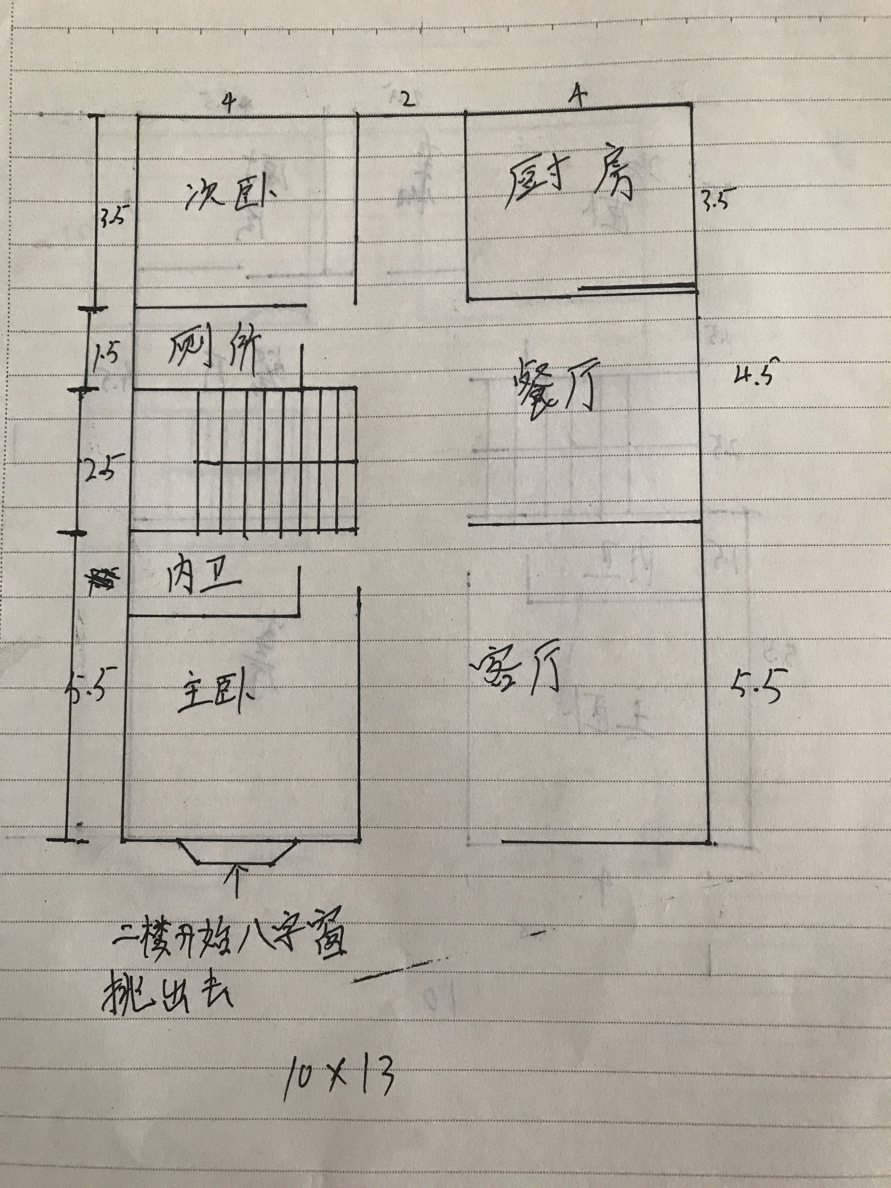 我的楼梯得在左 这样才有采光。 所以 厨房餐厅我才设计在右边。你说的二楼书房客厅就在厨房餐厅的位置
