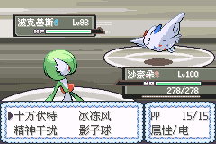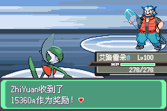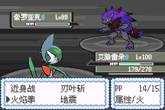 第三个火天王(手快了没截到天王的图[喷])同一路地震,要注意的是虽然是过天王但是带着只河马王(好像梦联都会带一只出其不意的精灵)河马王弱草电虫鬼恶虽然艾路雷朵带了叶刀但是被锁招了òᆺó没办法换人妻朵10万打了3发才带走的(好厚的皮,你不是弱电的咩[小乖])