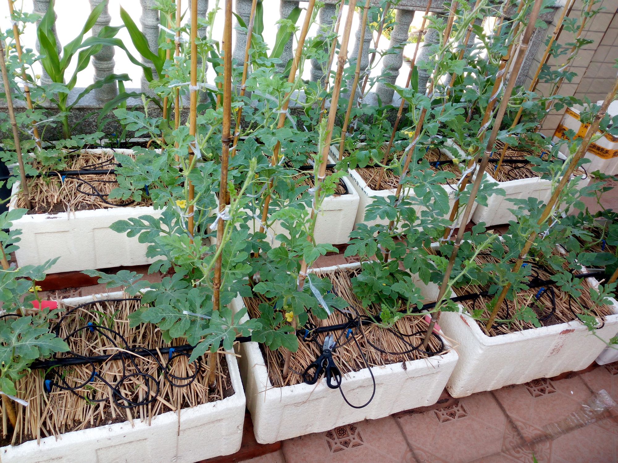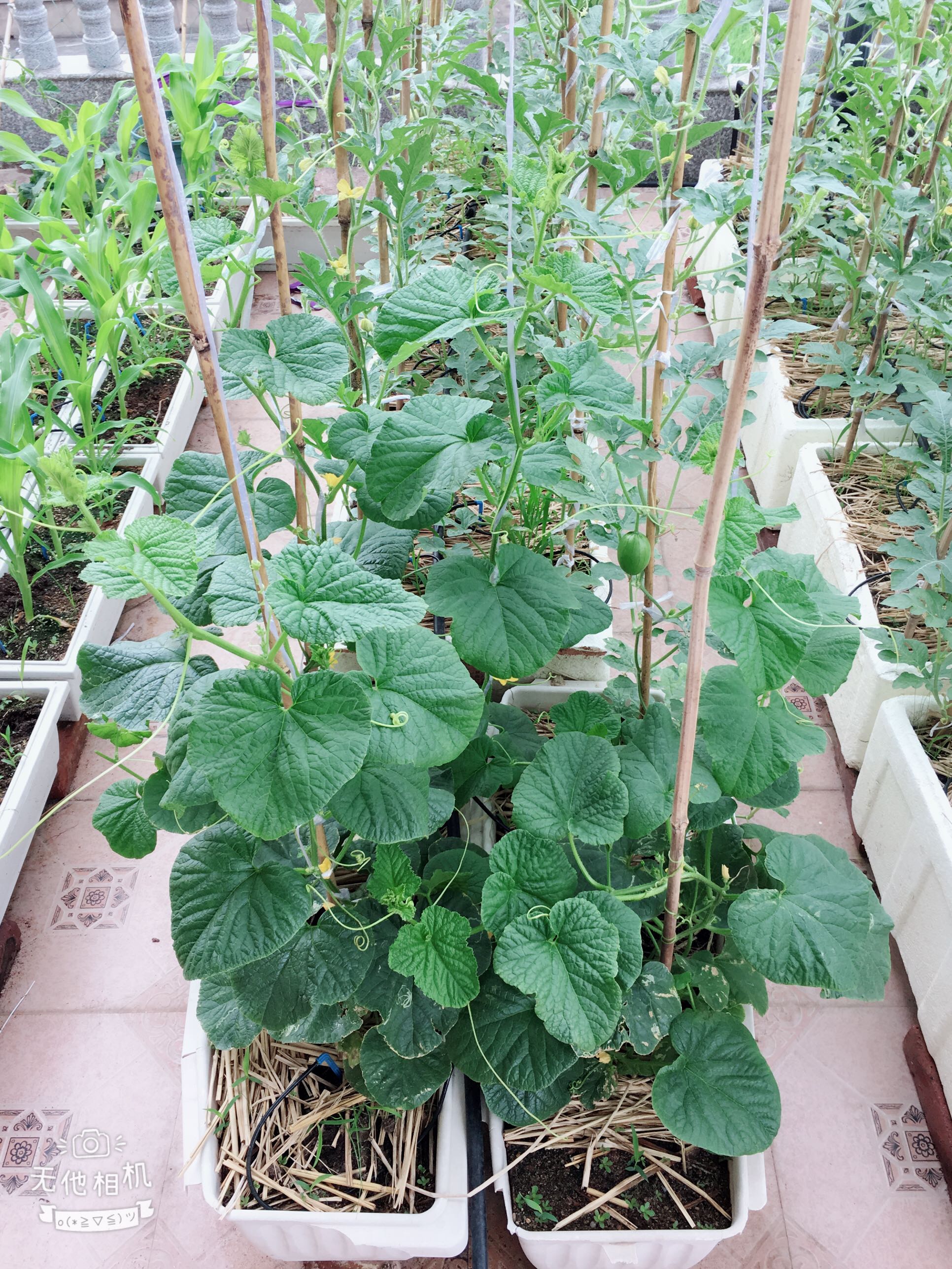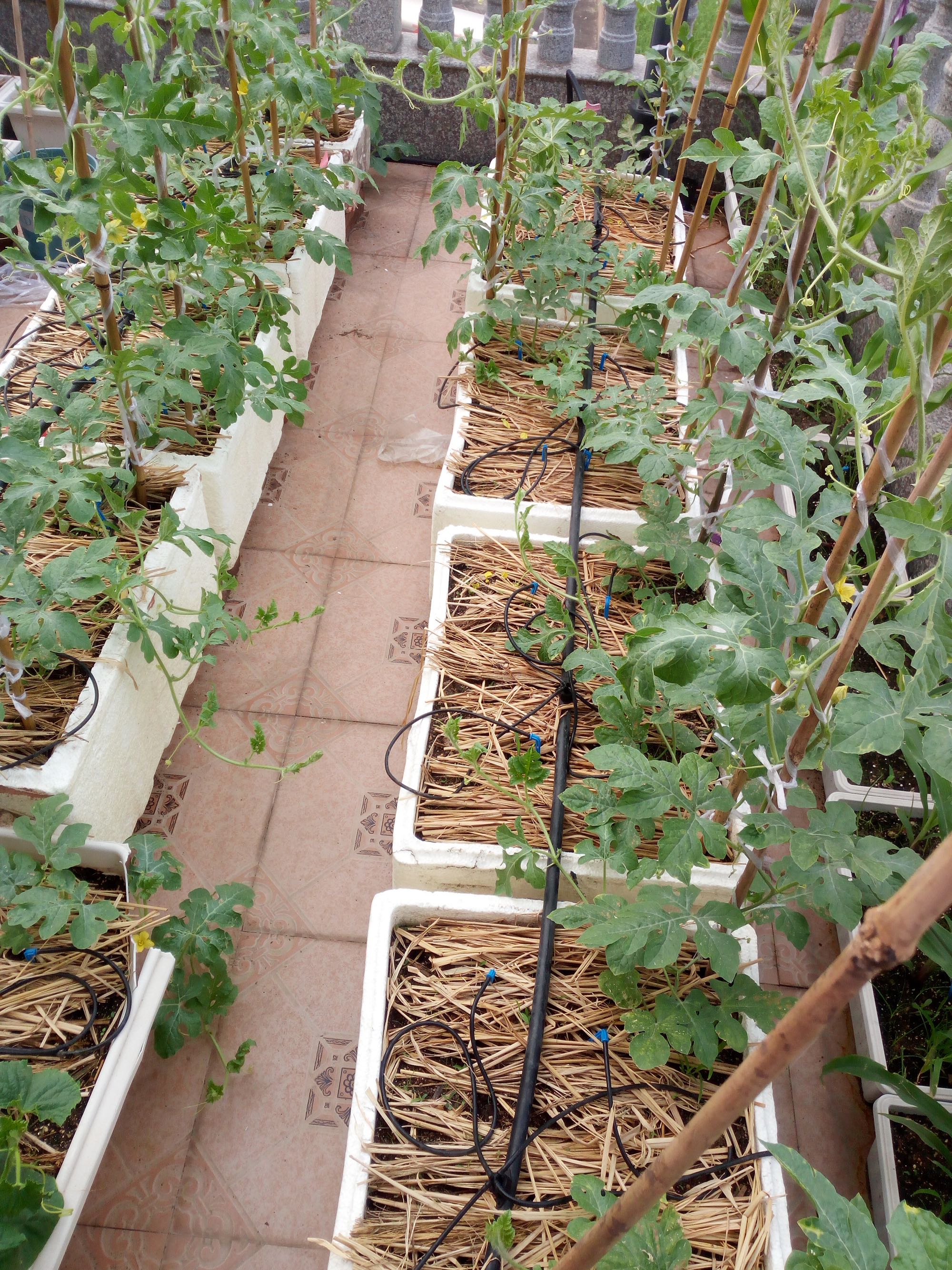 阳台风大,夏季高温水份蒸发非常快,没稻草一天最多两天得浇一次水,盖稻草4_7天浇一次