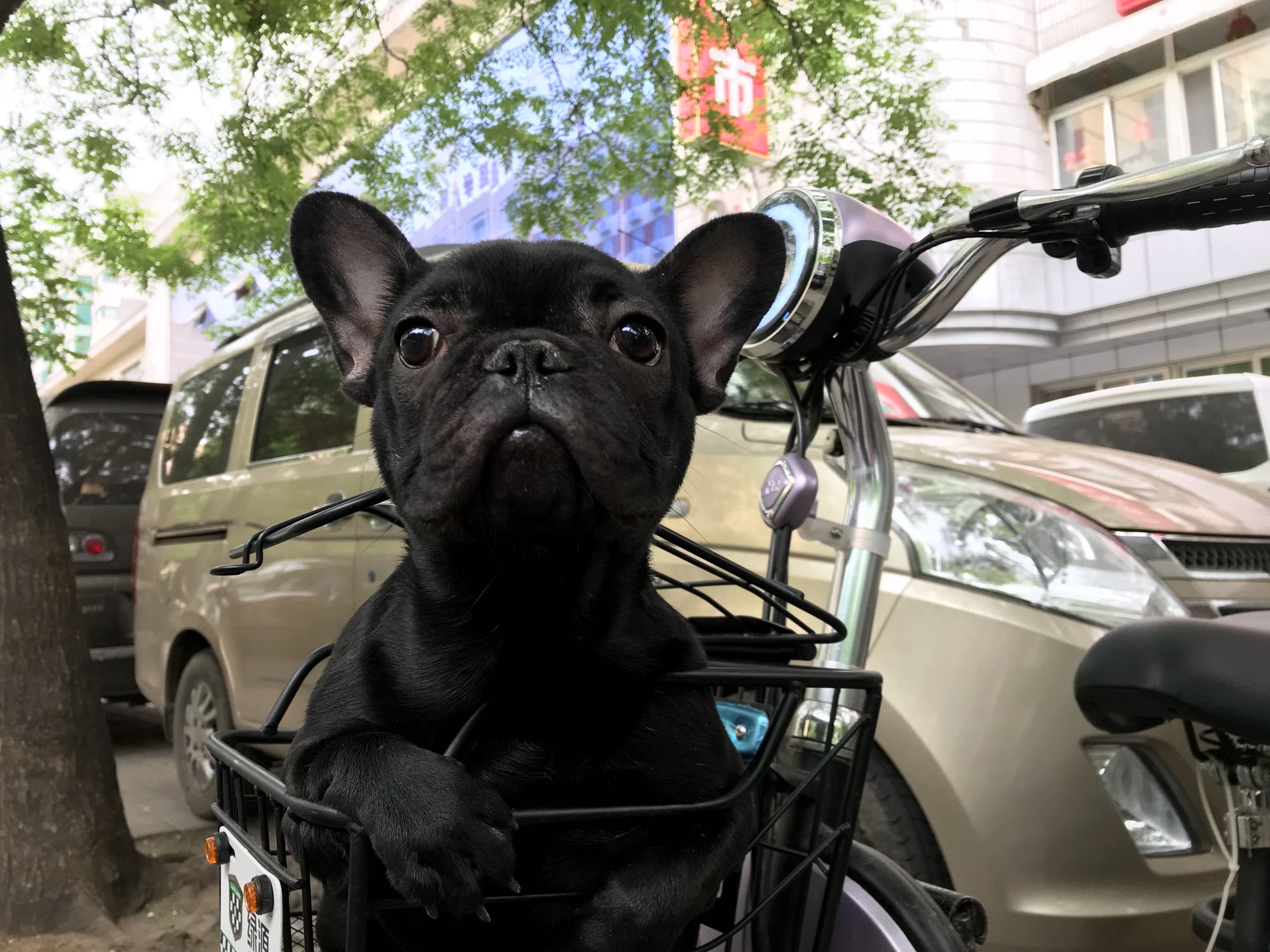 坐在车筐里好可爱