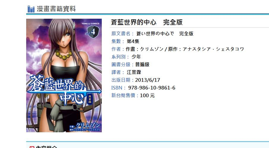 《在苍色世界的中心》到目前为止发行过至少9册中文版漫画!