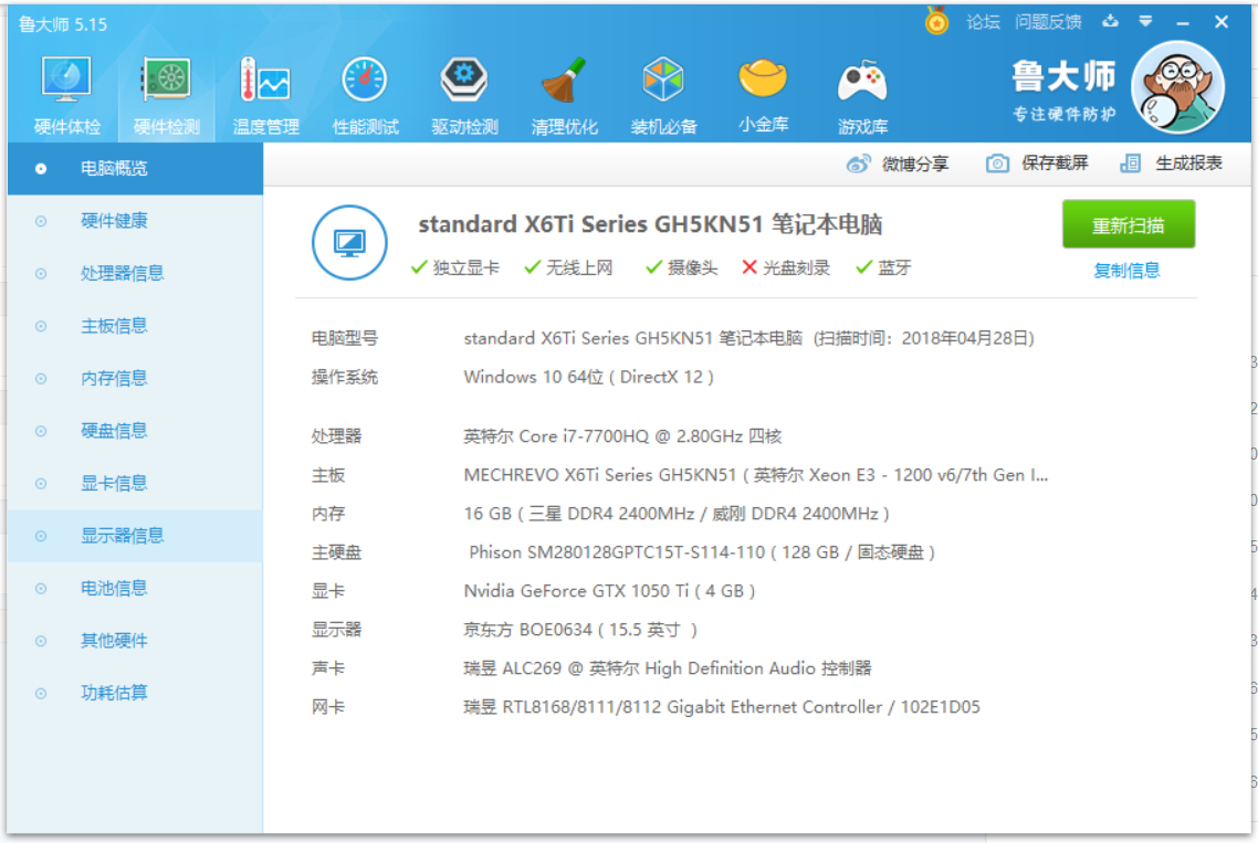 电脑配置如图 笔记本 硬件一般般