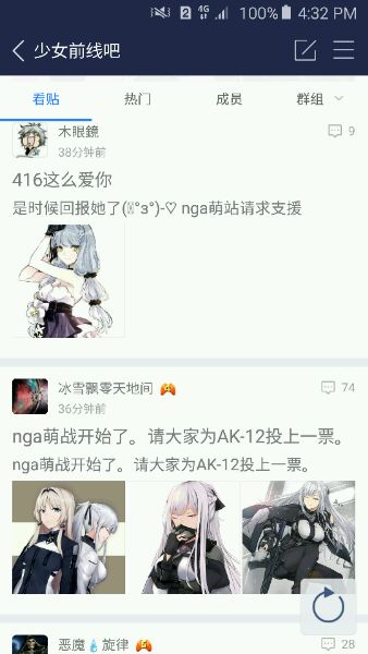 搜索nga,向下翻到手游区点进少女前线版块,首页就有e组的投票贴