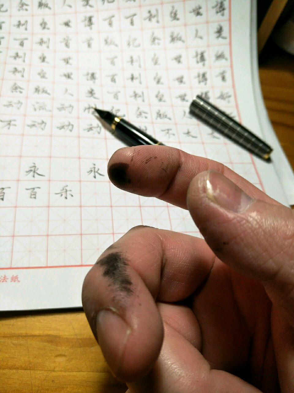 经过洗笔、上墨等操作,原来的漏墨点风平浪静。