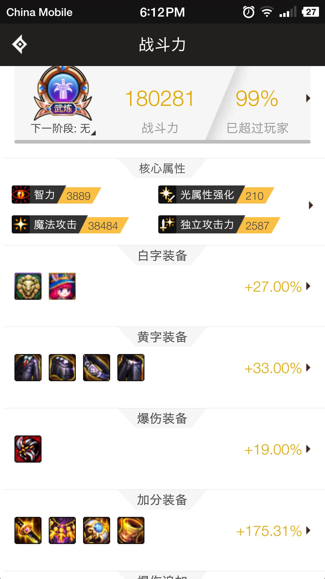 额,点了暴击率和武器精通,正常就15多点,就是全身红8,首饰11光,有个肩膀宝珠,鞋子什么的巨龙,宝宝独立,上下衣55,耳环强化11,