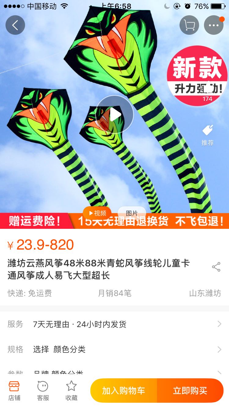 云燕的蛇风筝,我买过放过几次,做工好,颜色好看,飞的很稳,个人感受,仅供参考