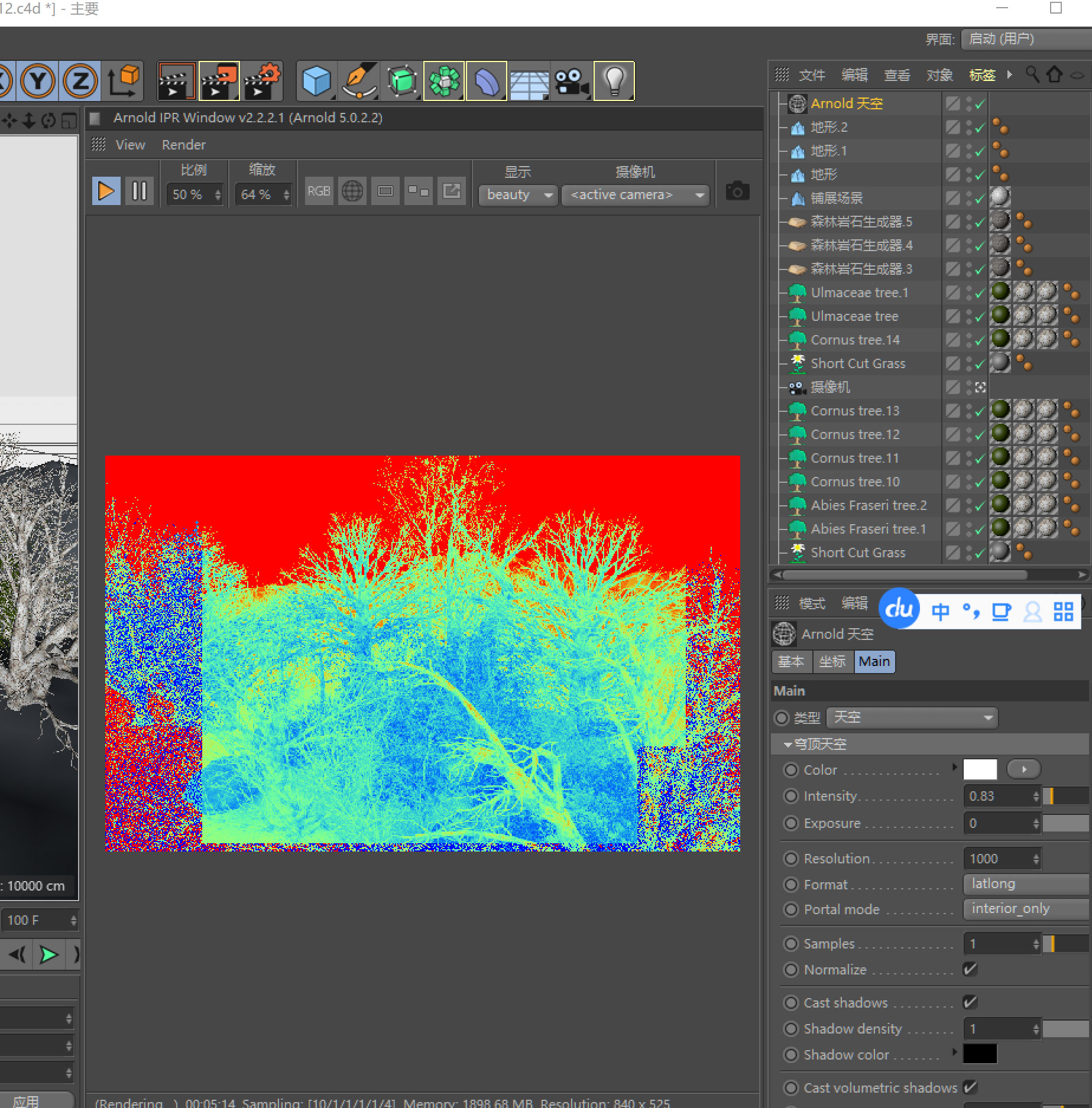 为什么阿诺德渲染器渲染出来是彩色的?有图
