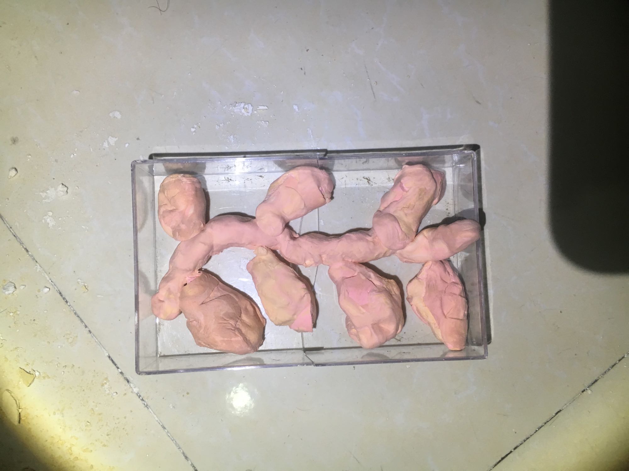 出蚁巢的大致形状,放在盒子内,可以轻微压平,像下面这样,那个凸起不要想歪了