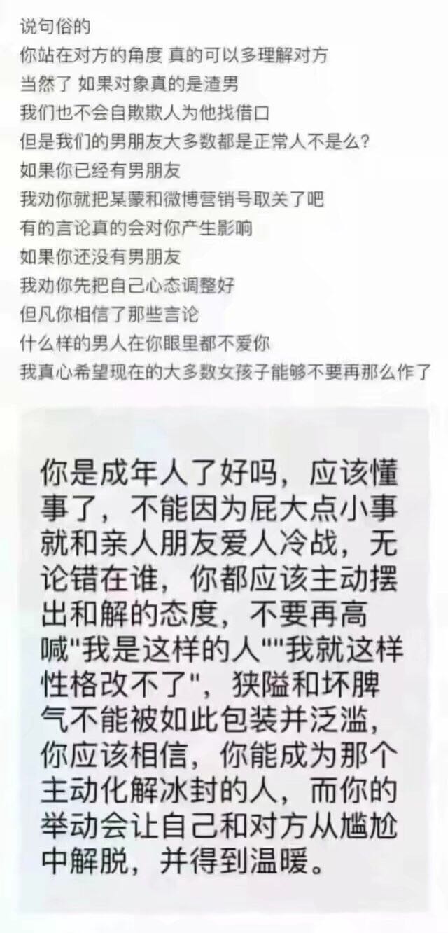 有些女生真的特别喜欢看毒鸡汤,还有电视上的情感节目,特别容易被洗脑。切身体会