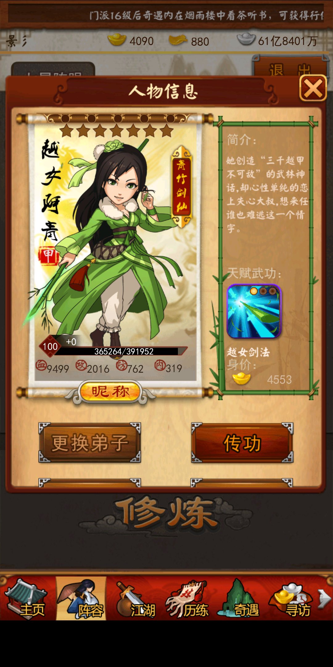黄蓉五星魂魄不够,舍利子不够,全部搞好接近12万防御,觉醒阿青。