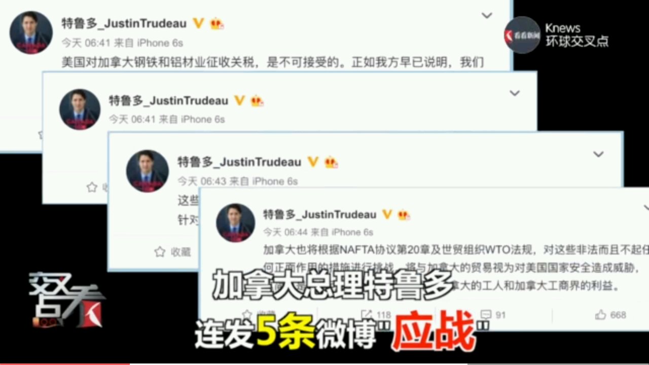牛啤牛啤!加拿大总理向川普君开打贸易战,在微博连发五推文宣战