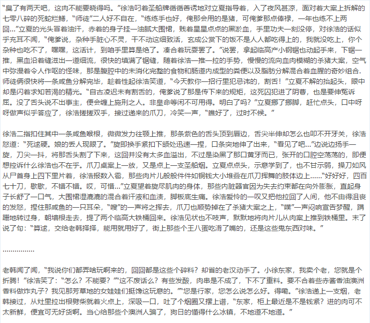 东门市有一档专做肉食的饭庄,生意火爆,物美价廉。深受广大归化民、土著,乃至元老狒狒所喜爱。
