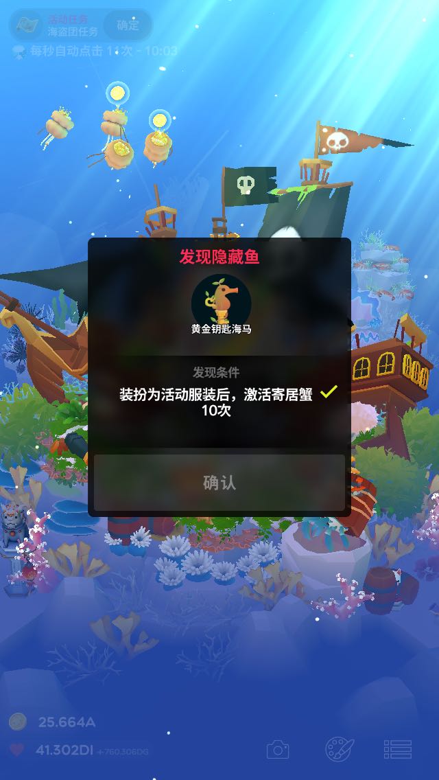 更新了加勒比海海盗主题暂时找到的隐藏鱼感觉这次的活动鱼挺少的