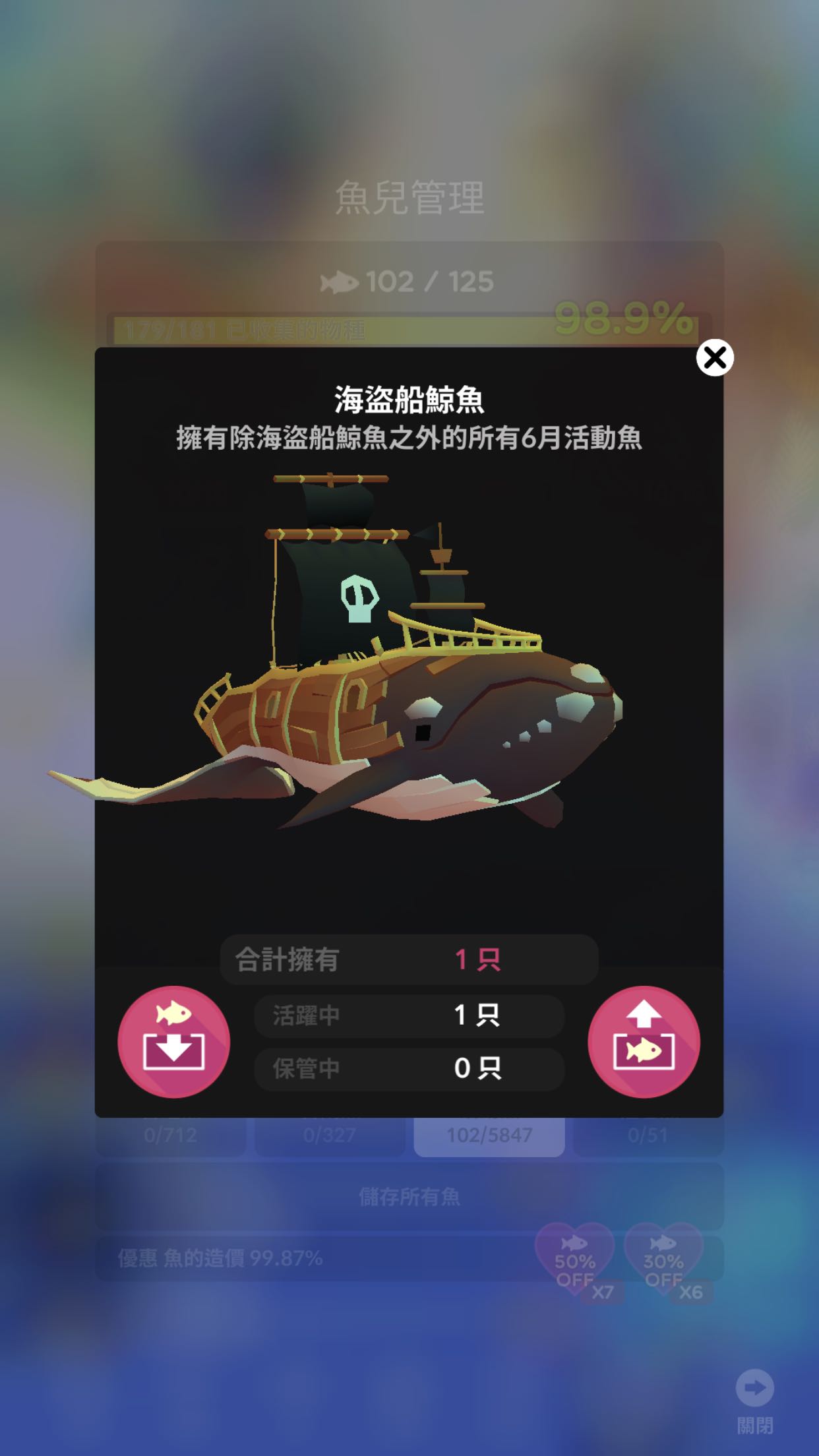 放出小丑鱼,龙虾,老鼠鲨,小飞象,鲸鱼(数量不计,每种各放一只),然后收集他们头上的金币,总共100个