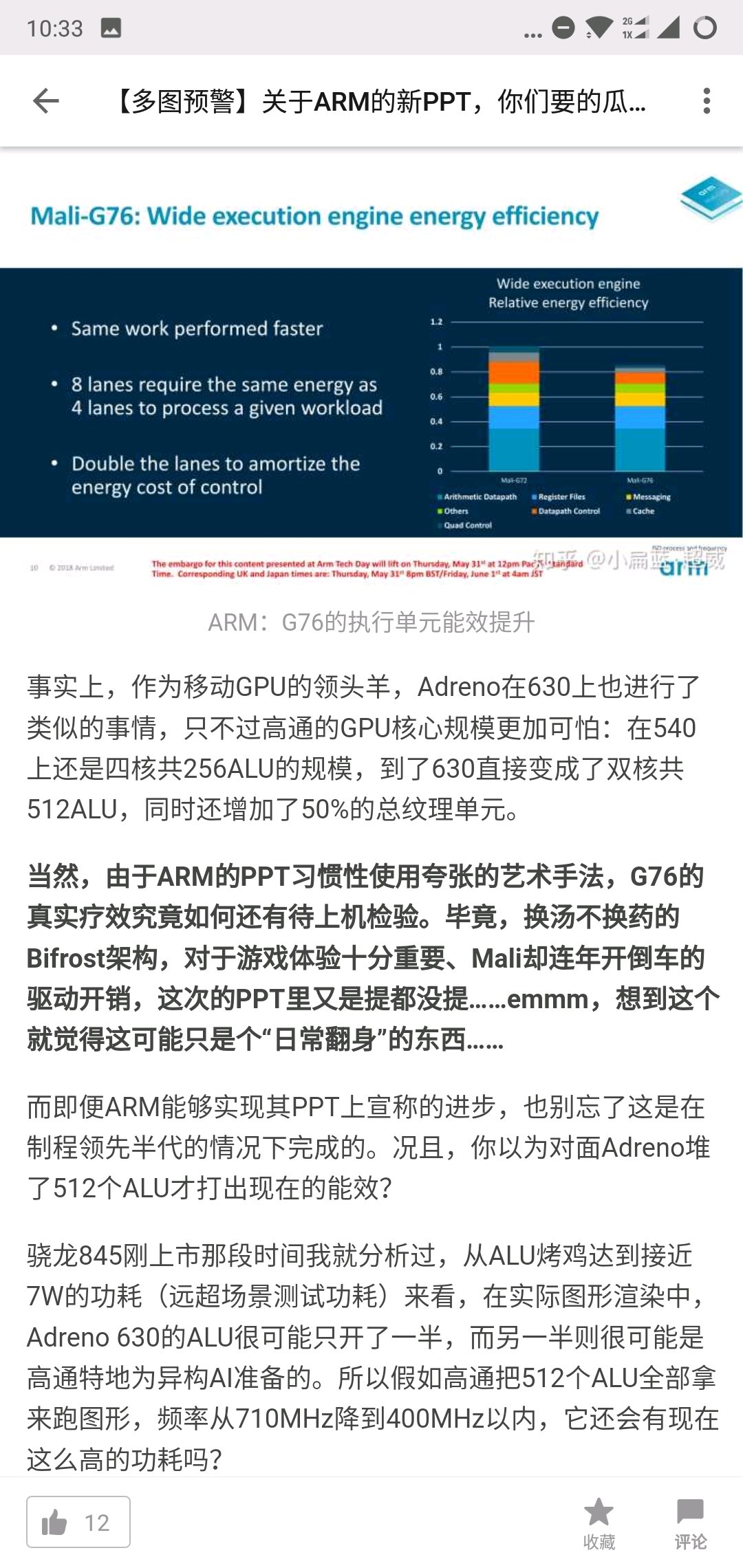 大家只关心adreno的性能表现,有没有人关注它的个核心规格,已知的有增加的二分之一的纹理单元,alu数量也是有所提升的,但是高通并没有透露增加多少。有大神说是512alu,但是相对于540翻倍的浮点单元实际表现只提升百分之三十(高通官方)虽然浮点不是唯一性能,今天早上又看到以下的一种说法