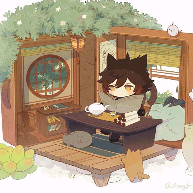 “你好啊希卡利,又见面了。”梦比优斯脸上挂着的依旧是一成不变的阳光笑容,他礼貌地跟希卡利打了声招呼,然后将手上提着的大大小小的袋子拿进客厅。