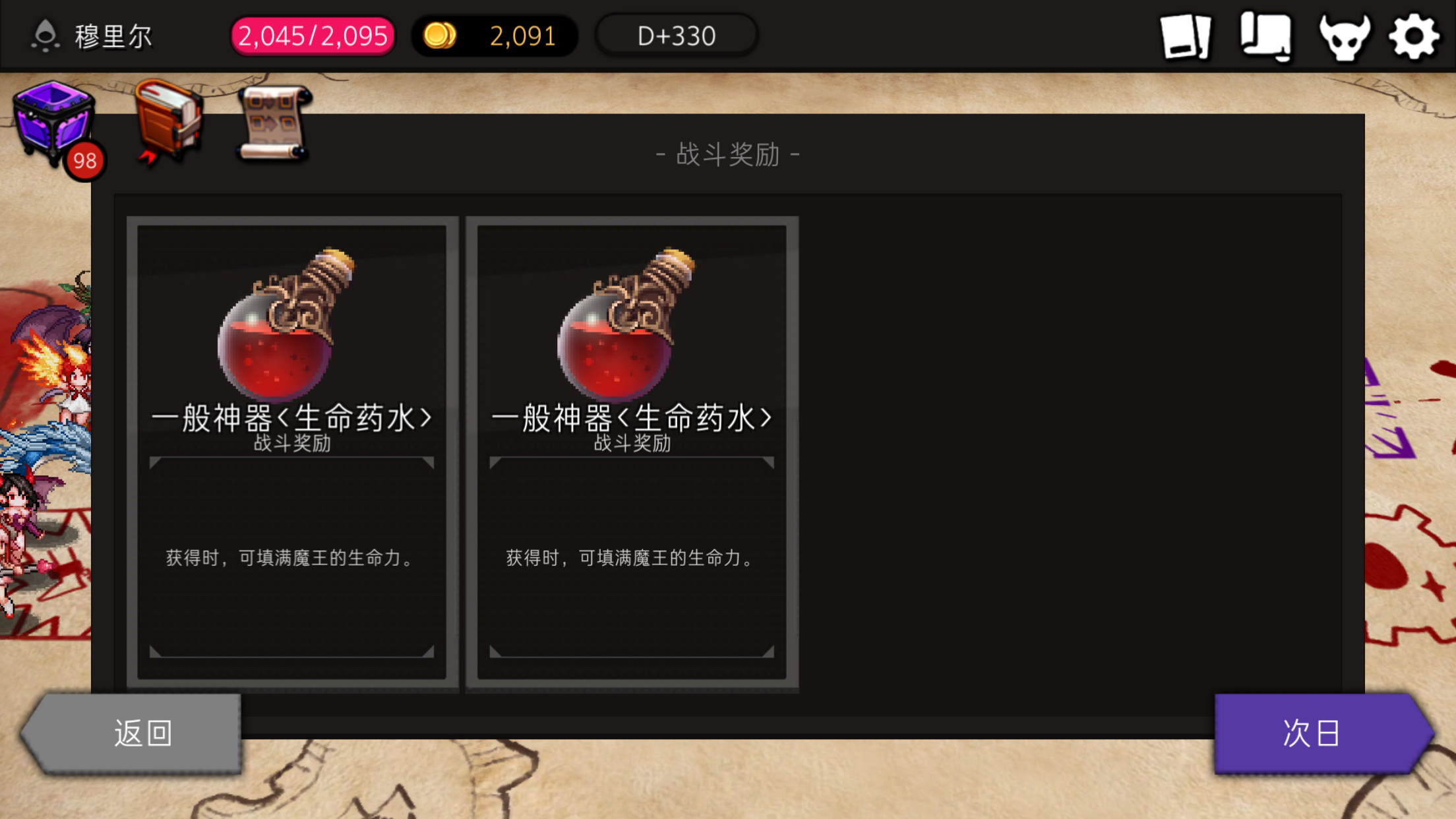 一瞬间要是2x一个没反应过来 你的魔物都凉了 都不知道你的魔王是怎么一直miss的 然后像喝水一样的血条进入重生