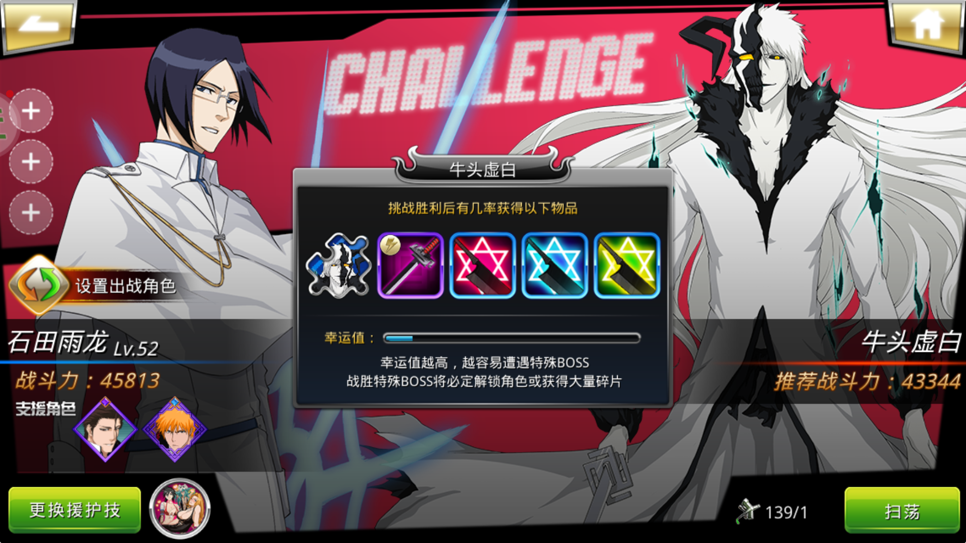 用上番队助战能达到5W战力的话,可以过BOSS,不过对技术有一定要求