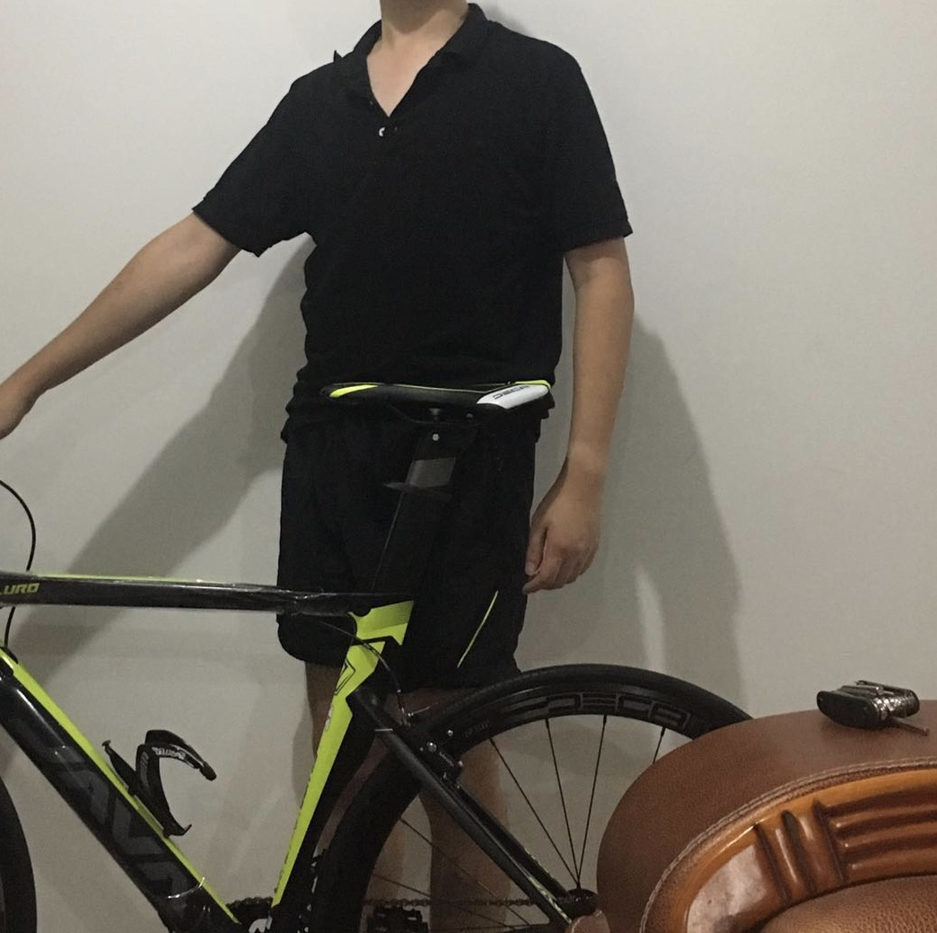 在家试骑一下,不敢坐上去,感觉太高了,