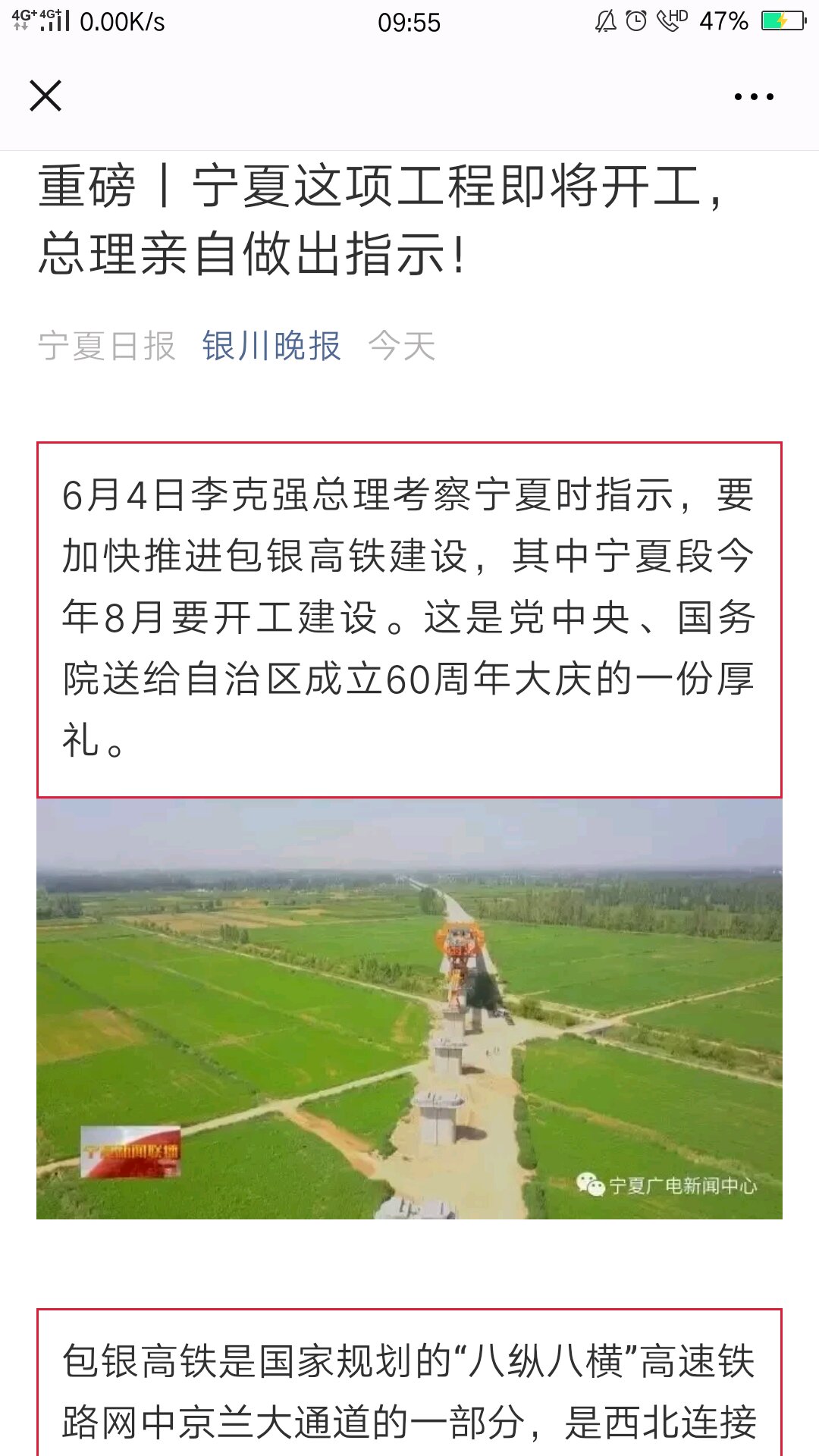 目前,包银高铁宁夏段项目规划选址、节能评估、用地预审等可研批复及前置文件已全部完成,各项准备工作加快推进,国家有关部委已确定今年8月开工建设。