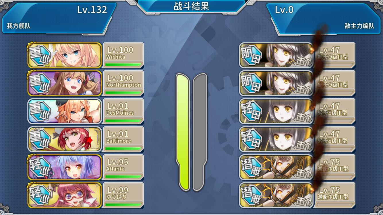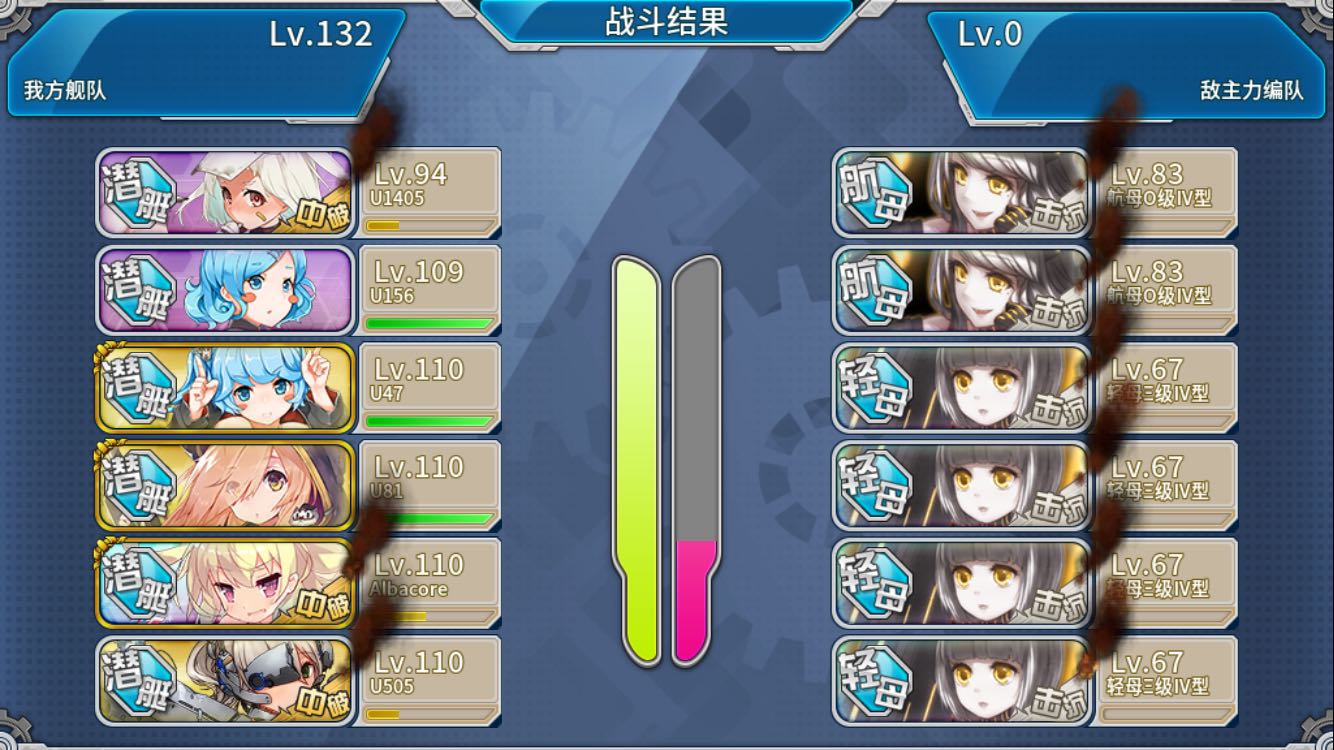 e6boss我打了两次,第一把vv非常不给面子,先被鱼雷戳成中保,然后对面dd一发大破……然后夜战理解miss……随便吧,我以为我又要重打,想起第二关我都快哭了……