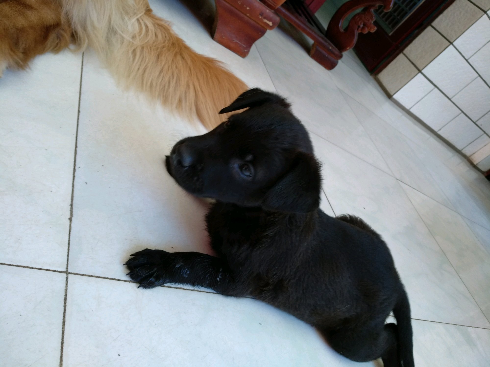 那是父母双方都是金毛,子女的毛色变异为纯黑的状况,我这只是与马犬串的。不过混血似乎比纯金毛更好动一些,谢谢!