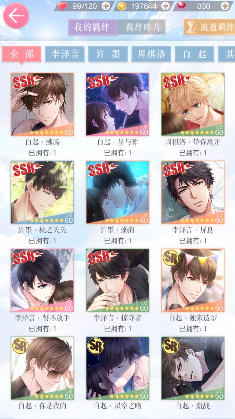 6张新满级ssr 4张旧满级ssr