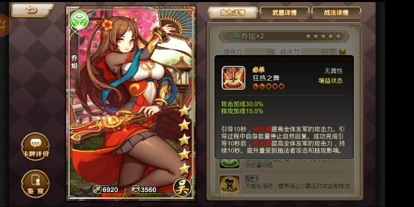 大乔配张昭 不间断全队80%攻击加成还有额外近战防御职能最大50%攻防加成