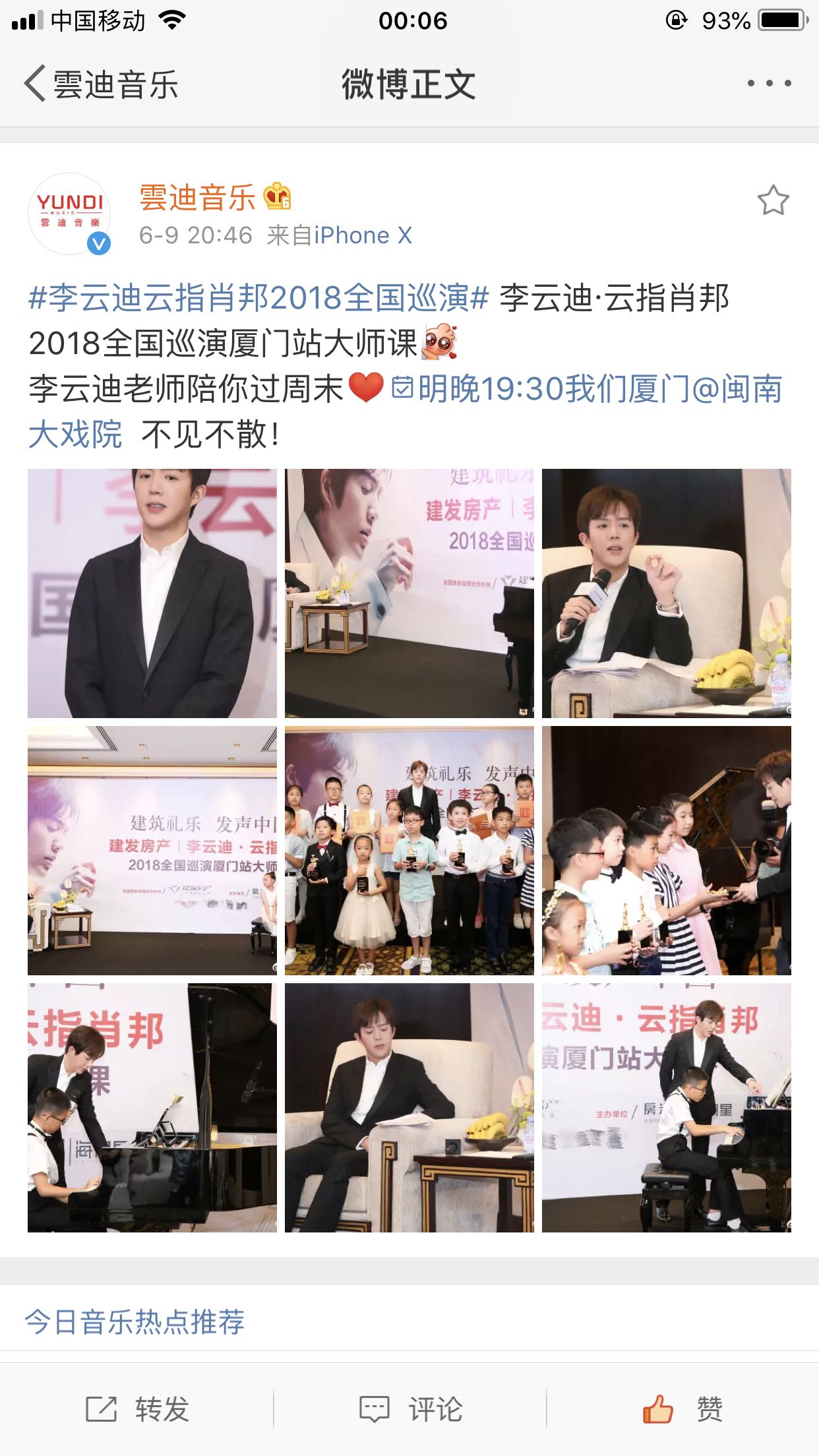李云迪老师陪你过周末[心]明晚19:30我们