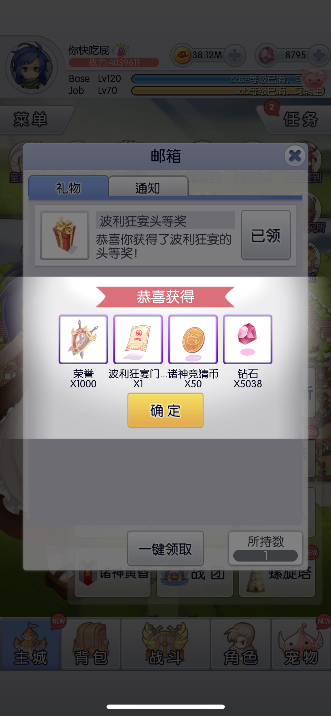 我今天也得了头等奖开心