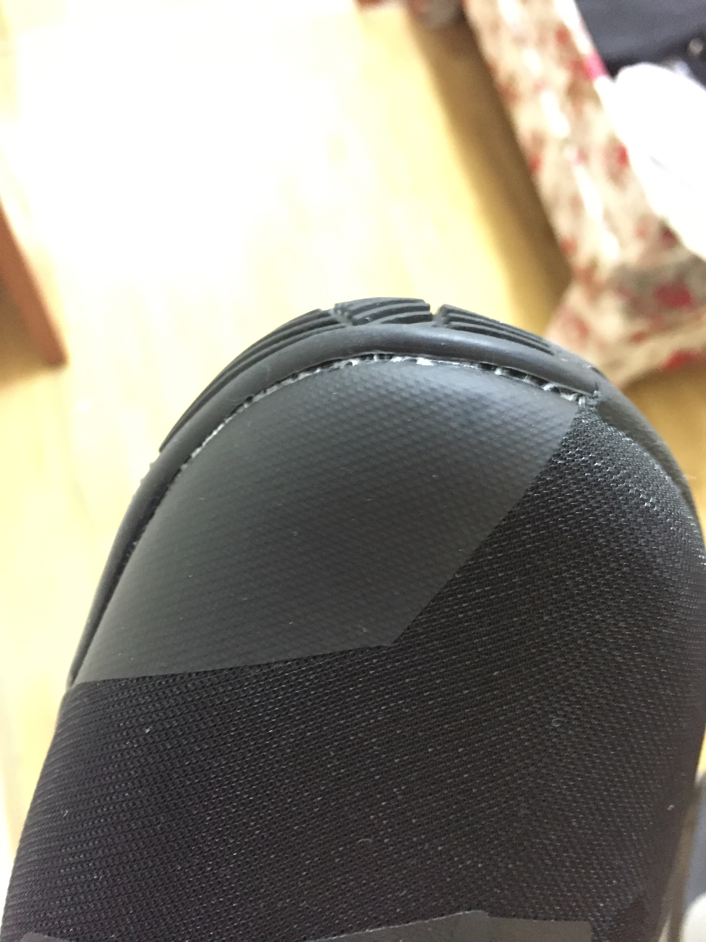 鞋子溢胶特别严重,基本上两只鞋子连接的地方都有严重溢胶,鞋舌的缝合也很粗糙。