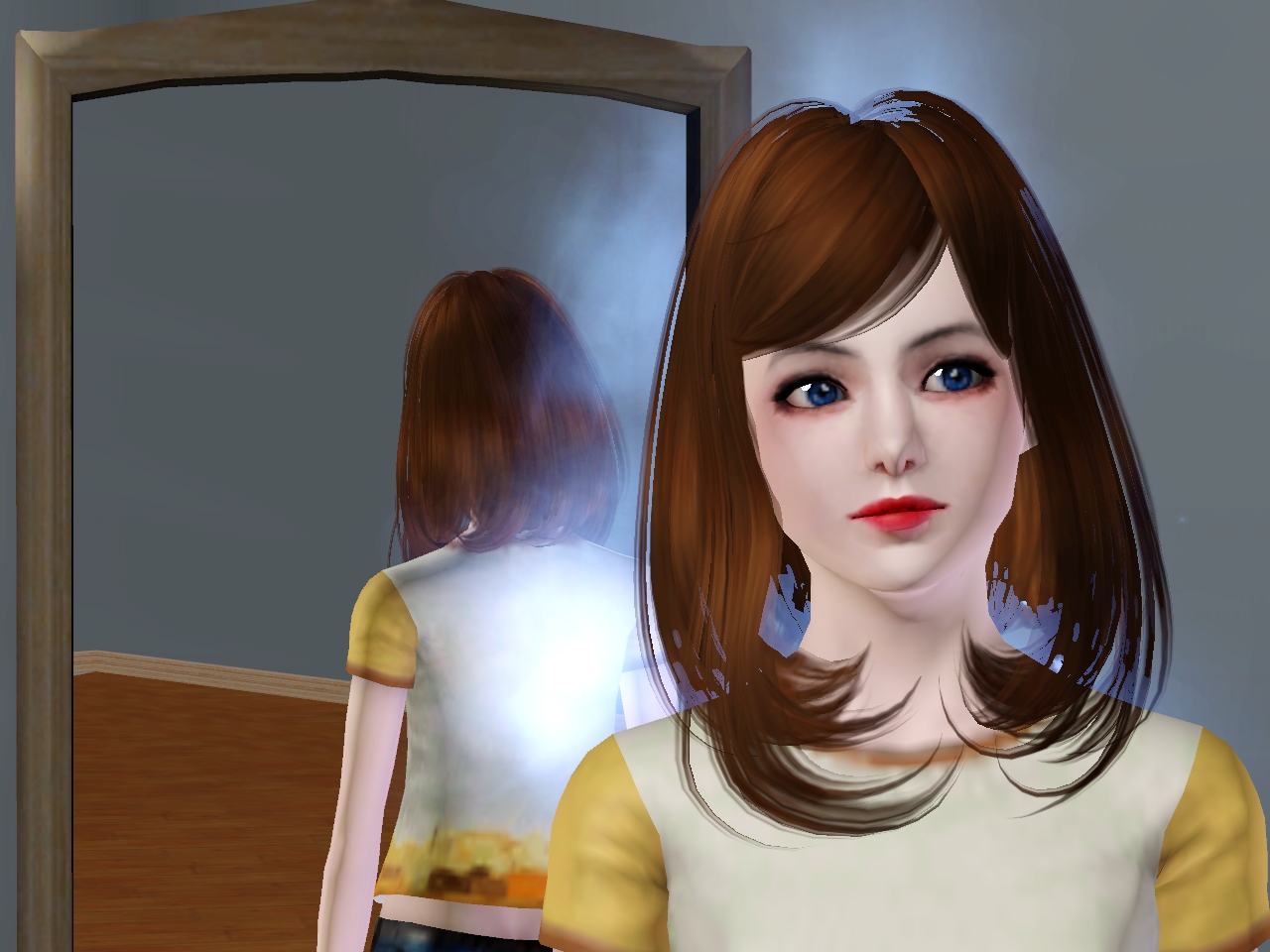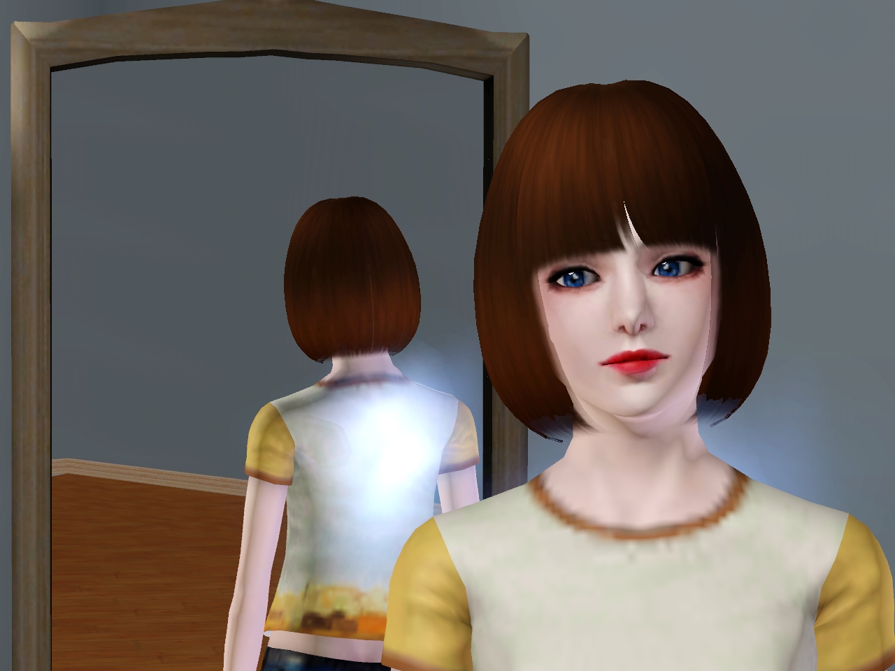 发型我真的尽力了。没找到那种齐耳短发还外翘的那种