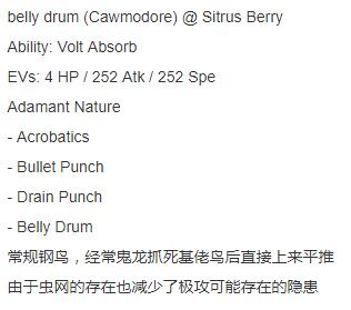 飞本如果不用杂耍就只有drill peck(80威力无特效),其他攻招主要有铁头子弹拳吸收拳打落追击等
