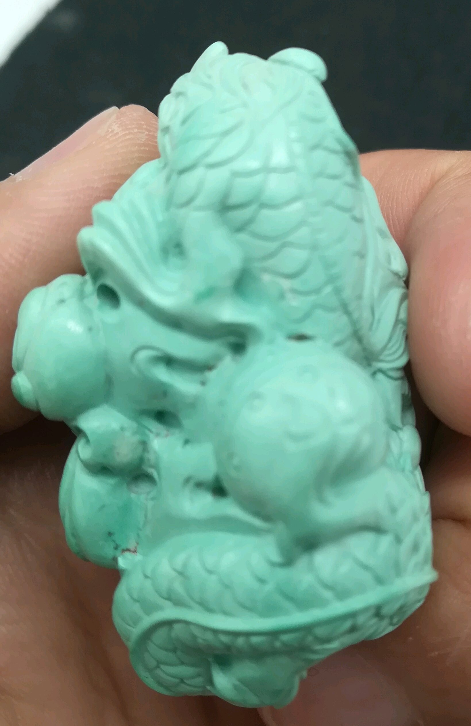 绿松石手工雕刻龙,做工精细,有喜欢的朋友吗