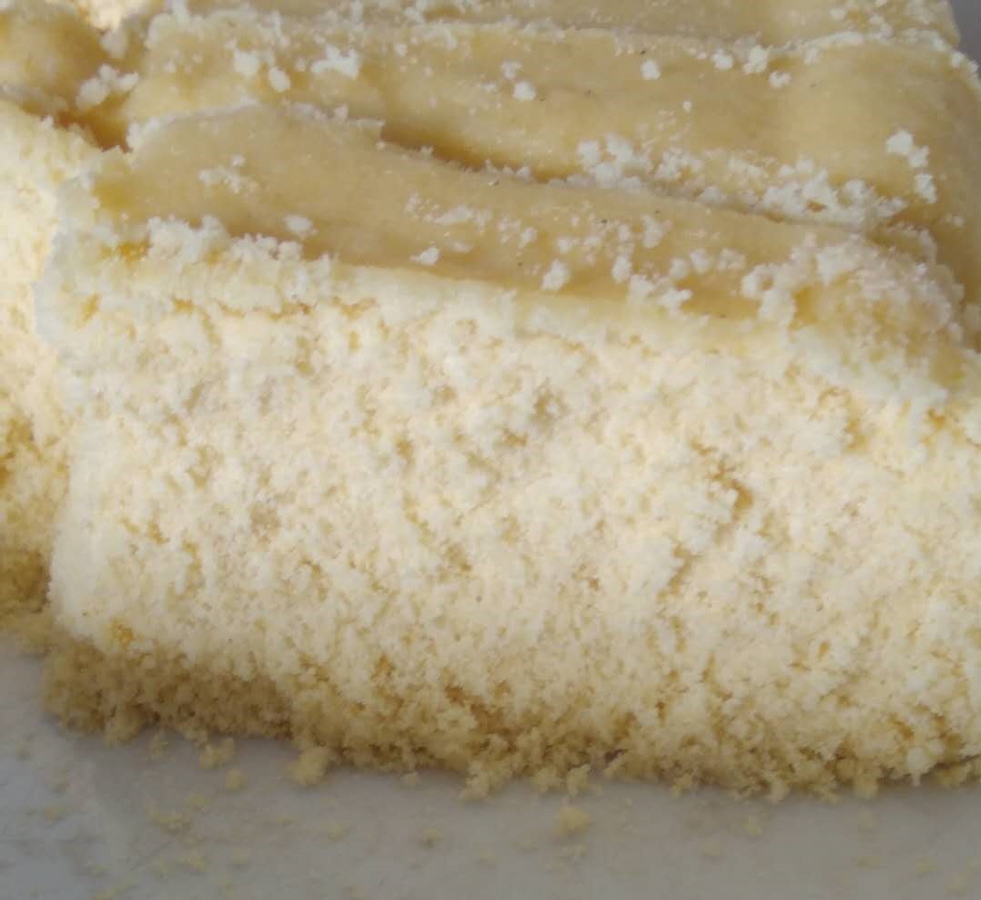无蛋,无奶、无油的纯素蛋糕我们已经模仿成了,味道还可以,看形状也像,就是因为用的是玉米面,口感略微粗糙,如果改为其它面粉估计会好很多,就是不知道有没有这个这么黄。