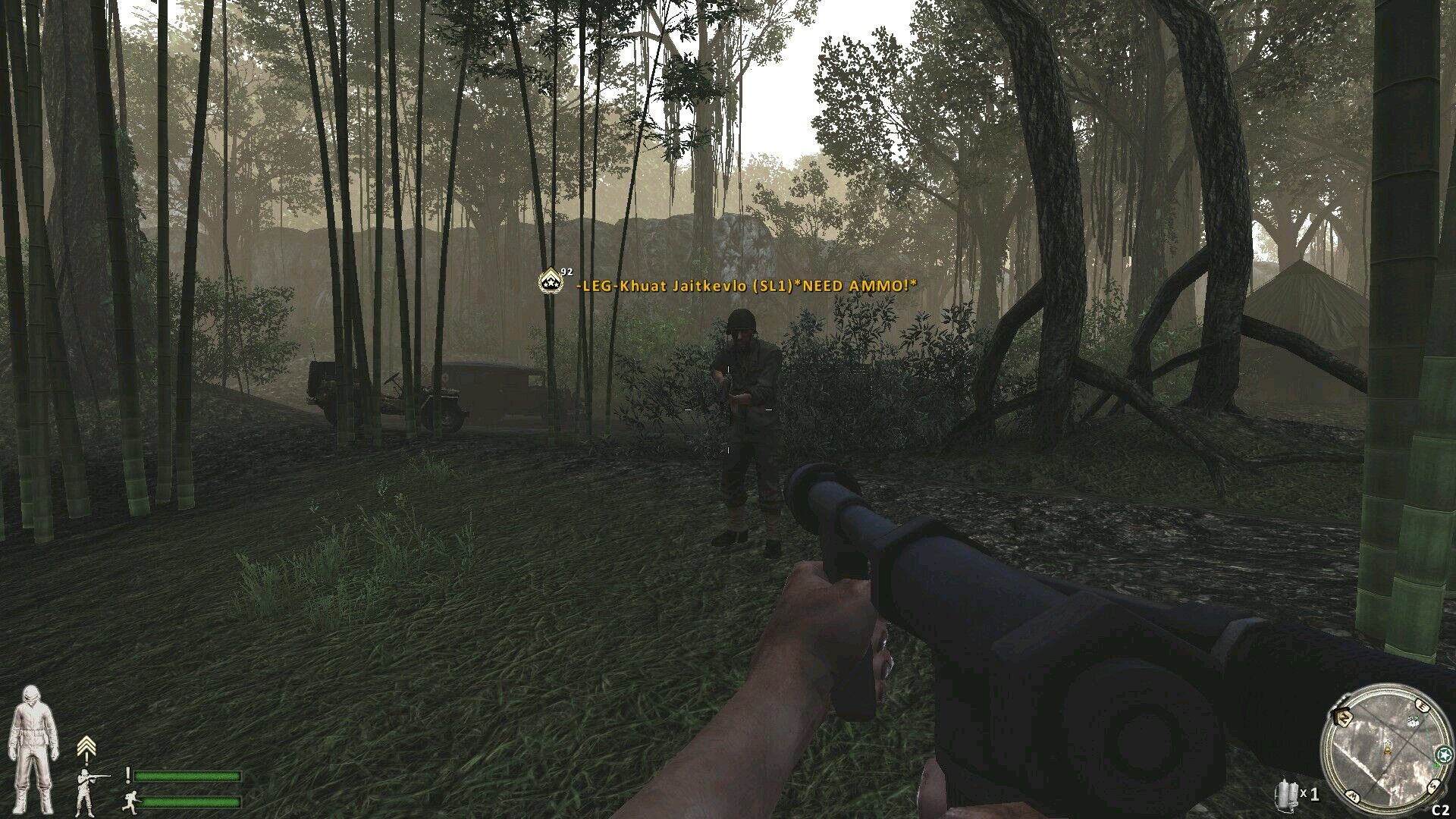我玩喷火兵有过一次,在贝里硫c点,正在喷火清房子的日军,被身后5米的队友打死了