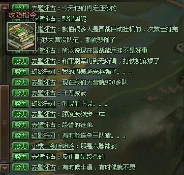 跨服国战结束了,不出意外,在九州十几个无敌号的横扫下,早早决定了胜败,搞笑的是,谁都知道九州的霸服是因为什么,然而胜利功臣里却没有一个无敌号。如果真的是这些人的功劳,那为什么到前天为止满地图的主城都是九州占领,其他盟一个都没有?如果这些所谓的功臣那么厉害,为什么一个城都守不住?给大家介绍下这个嘉书和赤壁,嘉书,外号假书或家鼠,真嘉书两次弃坑后就接了他的号,留给他一本于吉兵书,是最早拥有于吉兵书的号之一,特长就是在线时间多,跟在高战号后面捡人头。一年多前在大皇帝官方QQ群里,但凡无敌发言,此人必出来跟进附议,并阿谀奉承,后来我私下问过无敌这事,是不是很熟,他表示并不认识。这个赤壁更是个不值一提的炮灰号,然后竭力和土豪的控号拍马屁,控号们也是乐于接受奉承。结果就是真正出力的人什么都没得到,抱大腿的一个比一个嘚瑟,这就是大皇帝跨服国战的规则,太搞笑了,最后两张是和无敌私聊的截图,大家就知道谁才应该是真正的功臣了。