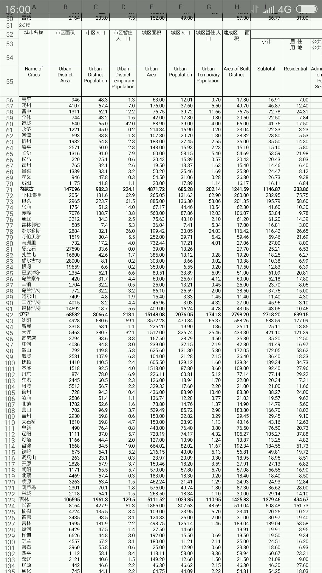 不用争论没用的,我把住建部网站上公布的2016年中国城市统计年鉴的数据截取一部分,自己看看,如果想看其它城市的,告诉我,我继续截取。