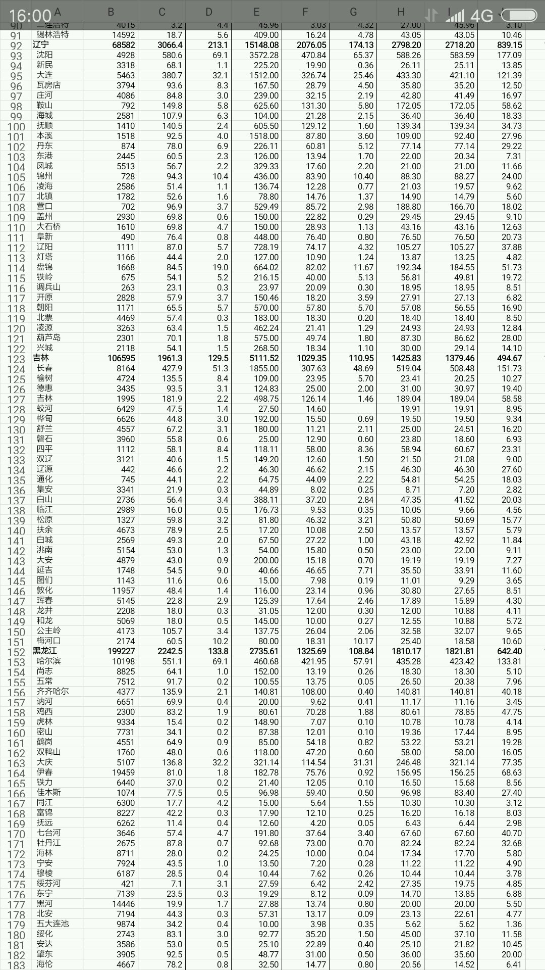 东北四市大小