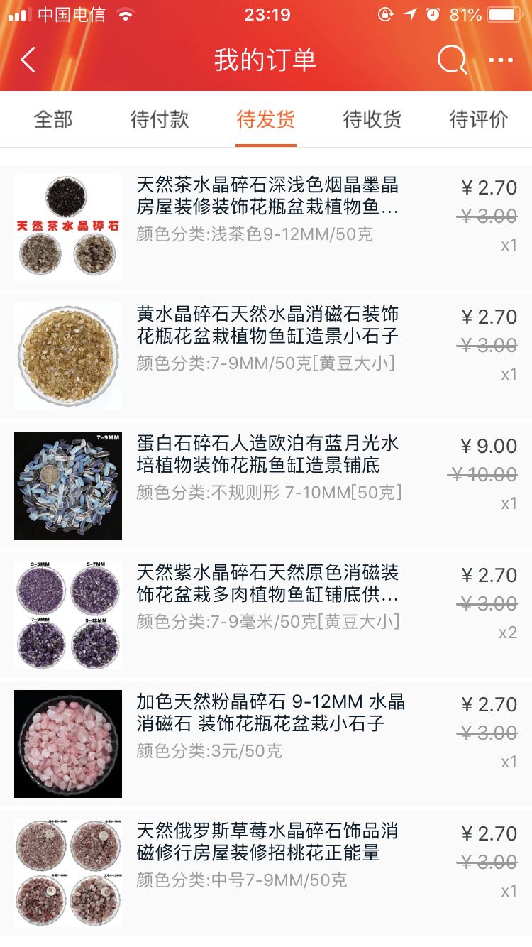 买了些水晶碎石和小珠子,水晶碎石到时候当底砂用,小珠子可以在换水的时候记录一下球的尺寸