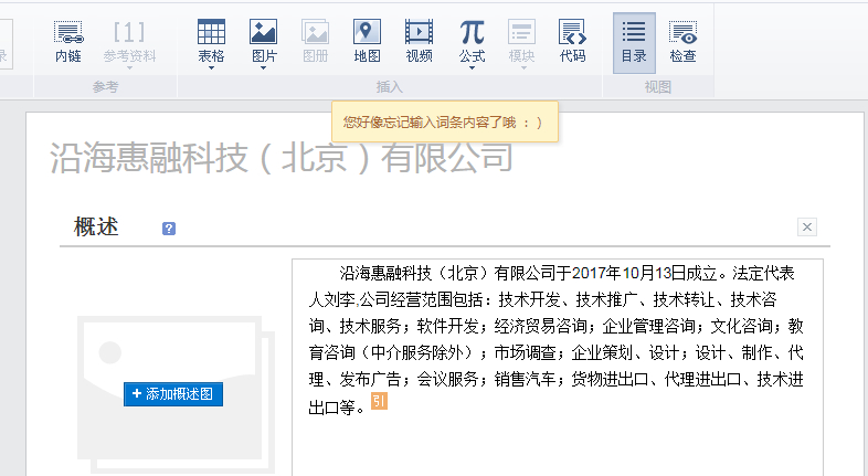 词条内容加个公司名字