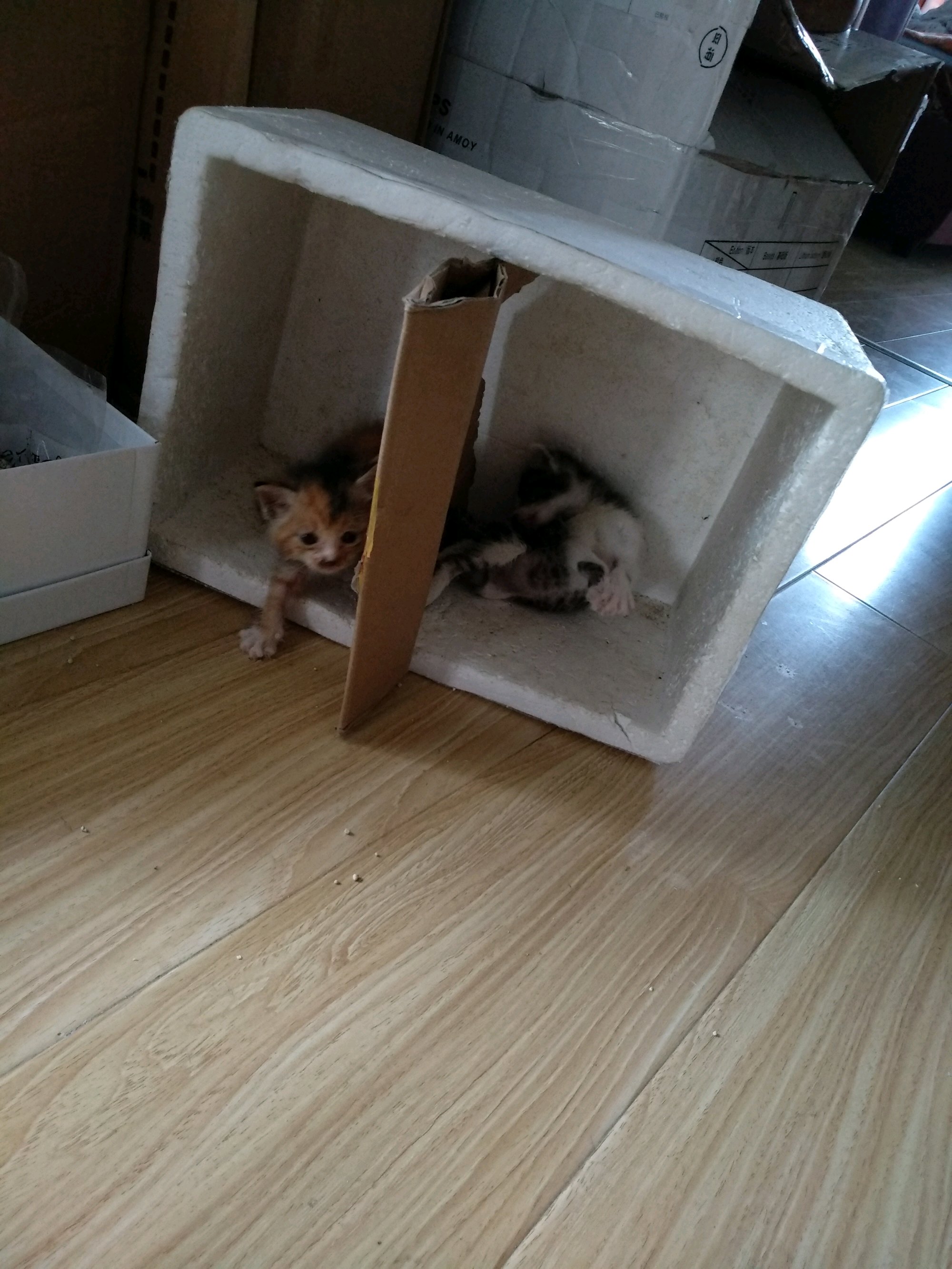 满月小猫找人领养,三花是母的比较温柔,黑白是公的比较活泼,会用猫砂,睡觉进窝。