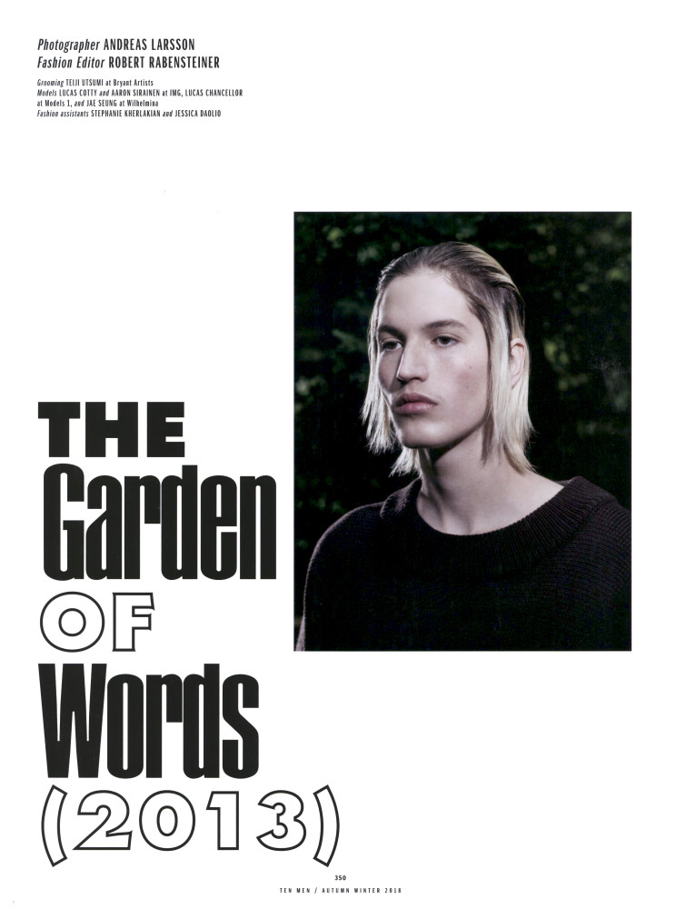 photographed by Andreas Larsson and styled by Robert Rabensteiner for "The Garden of Words (2013)" story featured in 10 Men magazine issue 48